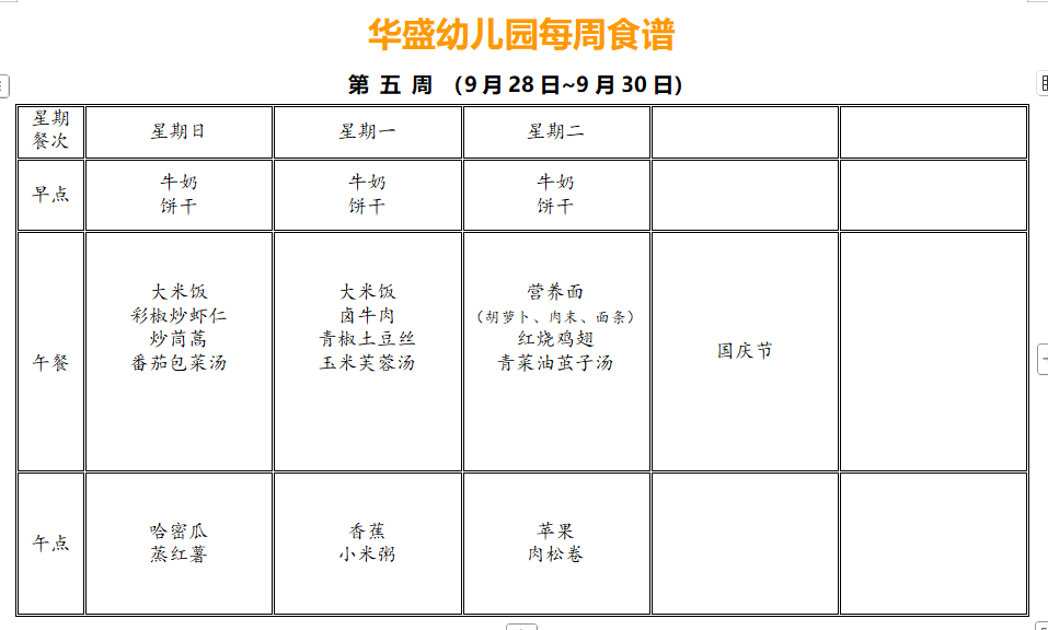 2025~2026(上)第五周华盛幼儿园幼儿营养食谱