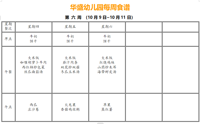 2025~2026(上)第六周华盛幼儿园幼儿营养食谱