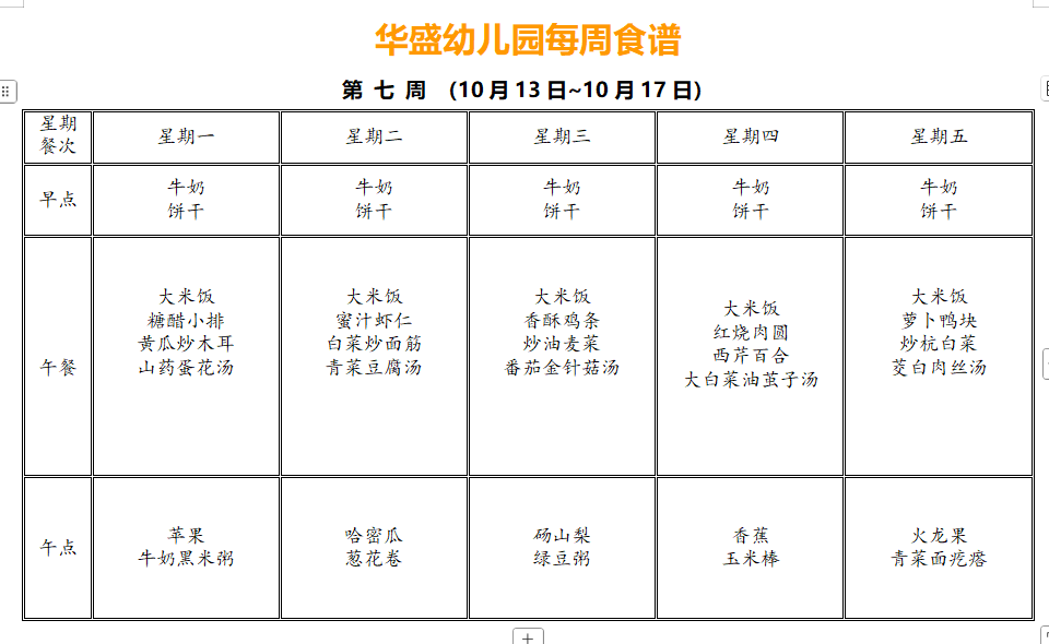 2025~2026(上)第七周华盛幼儿园幼儿营养食谱